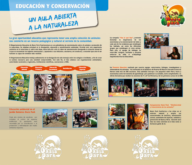 La campaña “Un aula abierta a la naturaleza” 2012-2013 se engloba dentro de un proyecto más extenso y que supone uno de los buques insignia del Departamento Educativo de Oasis Park. Durante todo el año se complementa con diferentes excursiones y acciones de información y reforestación en el Jardín Botánico de Oasis Park, además de la siguiente presentación de la “Ponencia Educativa”, el próximo 3 de mayo, en el Teatro Juan Ramón Jiménez (municipio de Telde, Las Palmas) dirigido a alumnos de 5º y 6º de Primaria.