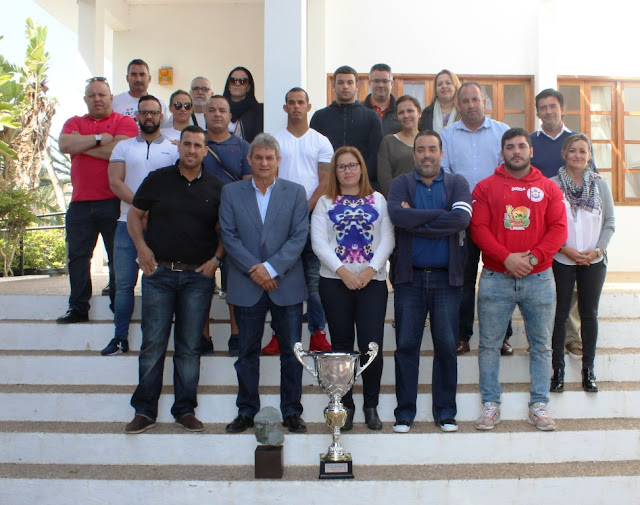 El Ayuntamiento de Pájara recibió hoy, lunes, 27 de febrero, a los miembros y directivos del Club de Lucha Saladar de Jandía, actuales campeones de la Liga Insular Sénior de Lucha de Canaria de primera categoría, tras vencer recientemente al Club de Lucha Unión Antigua.