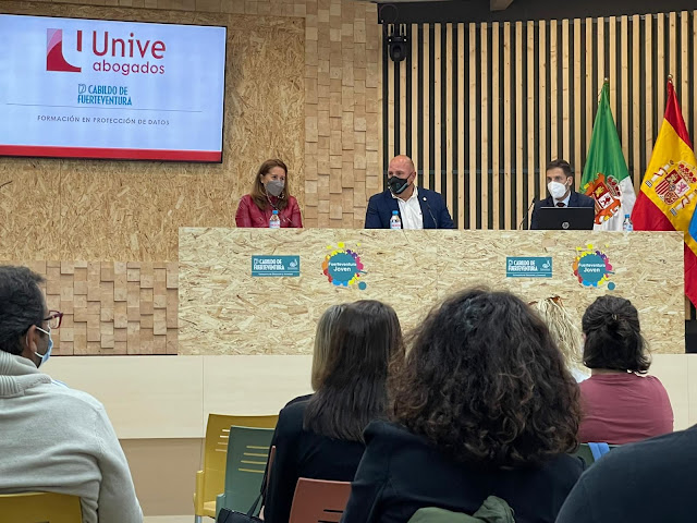 Personal funcionario del Cabildo de Fuerteventura asiste a una formación presencial en materia de protección de datos, cumpliendo así lo que recoge el Reglamento General de Protección de Datos (RGPD) así como la Ley Orgánica de Protección de Datos Personales y Garantía de los Derechos Digitales (LOPDGDD), que imponen una serie de obligaciones a cumplir por las Administraciones Públicas a la hora de manejar los datos personales con los que tratan en su actividad diaria. El presidente del Cabildo, Sergio Lloret López, asistió a la apertura de esta jornada formativa y apeló a la necesidad de actualizar los conocimientos en materia de transparencia y protección de datos, y “el deber de facilitar toda la información a la sociedad pero cumpliendo a la vez con las obligaciones legales en materia de los datos reservados”. En la presentación intervino también la vicepresidenta primera, Lola García, quien destacó “la importancia de este curso para la administración del Cabildo dada la relevancia de los expedientes que a diario maneja el personal funcionario y la necesidad de solventar cualquier duda que surja en torno a la Ley de Protección de Datos”. Esta acción formativa se divide en seis bloques que van desde los conceptos básicos de la normativa de protección de datos en el ámbito público, pasando por las funciones y obligaciones del personal funcionario, hasta la gestión de formación del personal en el marco del Esquema Nacional de Seguridad (ENS). Asimismo, solventará las dudas más frecuentes que en esta materia surgen en la Administración Pública. El curso se celebra en la sede de la antigua Universidad Popular, en Puerto del Rosario, y está a cargo de Unive Abogados. Al mismo asisten 144 personas entre personal administrativo y técnicos del Cabildo.