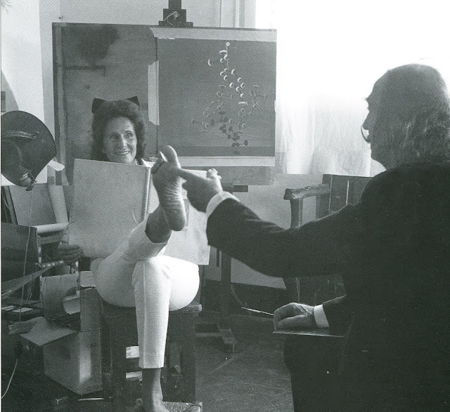 detalle de dicho estudio y Dalí jugando o señalando un punto en el pie de Gala;