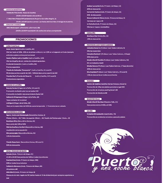 Sebastian Martin 13/nov/13 - 14:53 Siguiente chevron_right PROGRAMA DE LA II NOCHE EN BLANCO DE PUERTO DEL ROSARIO A CELEBRARSE EL 15 DE NOVIEMBRE DE 2013 ( pinchar sobre las imagenes para agrandarlas ) Sebastian Martin Etiquetas Sin categoría Siguiente chevron_right