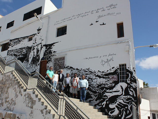 Puerto del Rosario :El Muralista Derque Castellano Culmina El Mural “Recuerdos del Viejo Pescador” en la Avenida Maritima