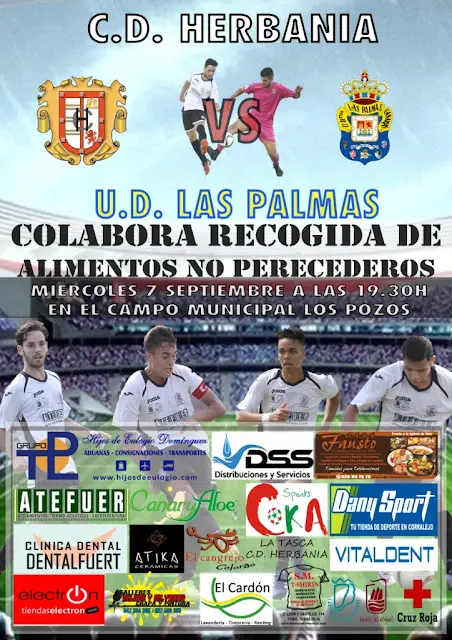 En Puerto del Rosario el Miércoles 7 De Septiembre,a partir de las 19:30h en el Estadio Municipal de Los Pozos con Motivo de la disputa del Encuentro de Presentación del Club Deportivo Herbania Juvenil frente a la Unión Deportiva Las Palmas, se procederá a una recogida de alimentos No Perecederos ,siendo muy Importante la Colaboración de Todos.