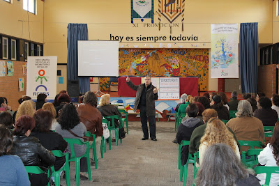 Una vez finalizada la exposición del profesor Ramos Gordillo, los asistentes se organizaron en cuatro talleres de actividades, que fueron turnando a lo largo de la jornada, y que versaron sobre los siguientes contenidos: El consumo y la educación en valores (a cargo de Calixto Herrera), Igualdad, responsabilidad y tareas de familia (Margarita Valiente), Gestión del ocio y tiempo libre en familia, para mejorar la salud (Elena Pérez) y Uso y abuso de las redes sociales (Pablo Gatell).