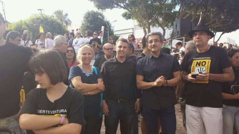 acuden a la manifestación en Fuerteventura contra las prospecciones petrolíferas, acompañados