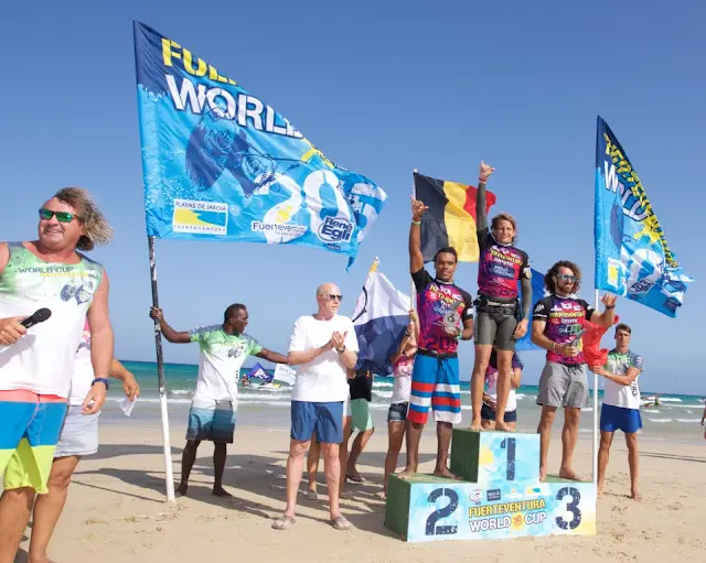 Este martes se han entregado los trofeos a los ganadores de la modalidad de estilo libre, la primera de las cuatro pruebas que se desarrollarán en la XXX edición del mundial de Windsurfing y Kiteboarding que estos días se desarrolla en la playa de Sotavento. Al acto de entrega de premios asistió el Gerente del patronato de turismo de Fuerteventura, Moisés Jorge; el concejal de turismo y deportes del Ayuntamiento de Pájara, Farés Sosa, y el fundador de la prueba René Egli.