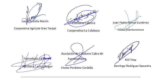 Para que quede constancia de las demandas de diferentes colectivos y representantes del sector agrario de la Isla se firma en Fuerteventura a 1 de Abril de 2020
