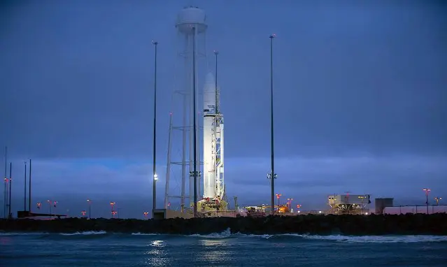 La nave Cygnus, con suministros para la Estación Espacial Internacional, aguarda en el cohete de lanzamiento a la espera de que mejoren las condiciones meteorológicas. / NASA Wallops