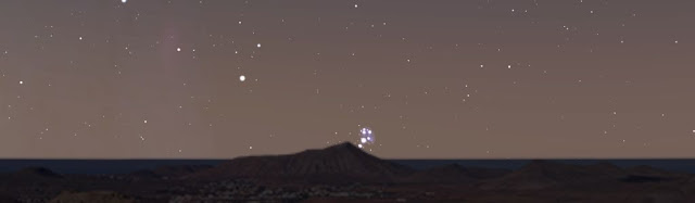 Pléyades surgiendo por la punta más elevada de dicha montaña desde los primeros