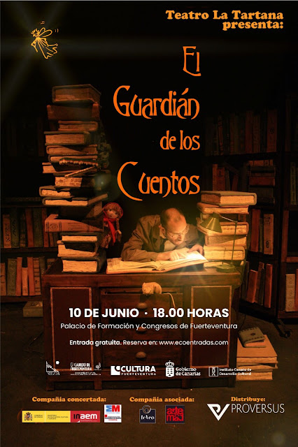 En Fuerteventura la compañía madrileña La Tartana ofrecerá en la Isla su espectáculo infantil de títeres El guardián de los cuentos. Será el viernes 10 de junio, en el marco de la programación de la 32 edición de la Feria Insular del Libro de Fuerteventura, que tendrá lugar entre el miércoles 8 y el domingo 12 de junio en la Plaza del Centenario del Palacio de Formación y Congresos.