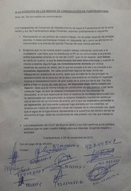 centro y sur de Fuerteventura abajo firmantes, exponen públicamente lo