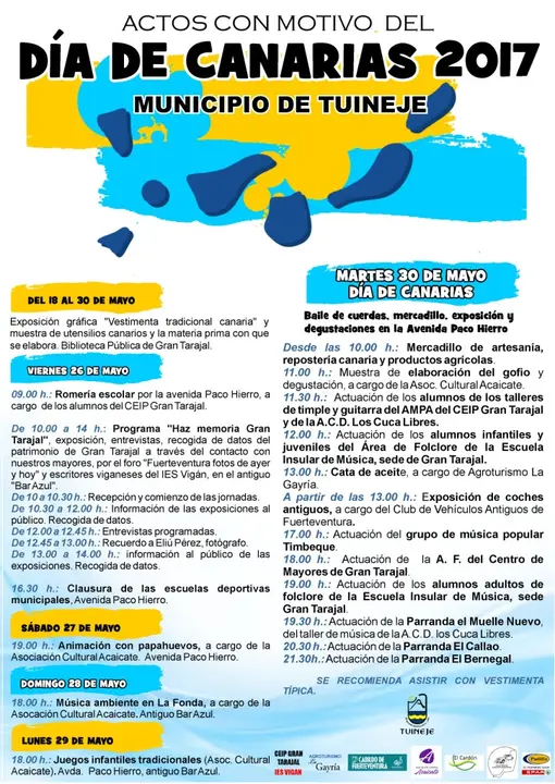 programa de actividades en Gran Tarajal con motivo de la celebración del Día de
