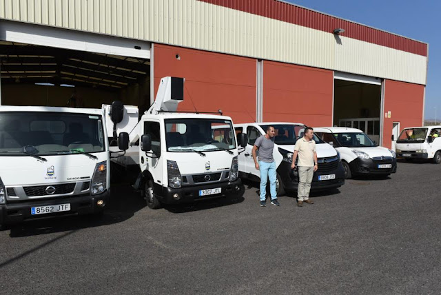 - A través de la modalidad de renting, el Ayuntamiento de Tuineje ha adquirido tres furgonetas, un vehículo de nueve plazas, tres camiones ligeros con caja abierta y un camión cesta con brazo articulado