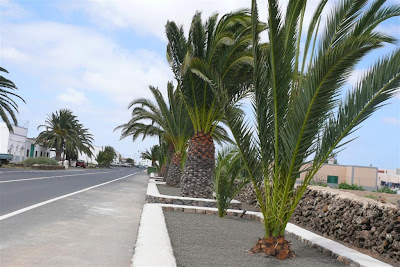 Varios parterres de palmeras han sido remozados y mejorados por la concejalía de Obras y Servicios del Ayuntamiento de La Oliva, una intervención que embellece visiblemente la entrada al pueblo de Villaverde, en el municipio de La Oliva.