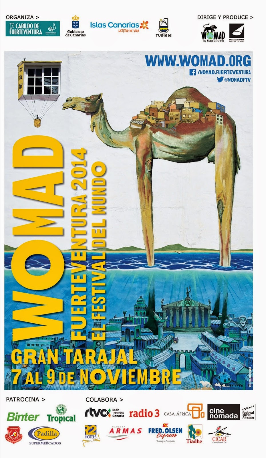 Fuerteventura se une a la familia WOMAD este 2014, en un proyecto que atiende a la denominación de festival ecológico y multicultural, un encuentro por y para el arte, la naturaleza y la integración cultural. La música del mestizaje, el arte de la danza y un espacio abierto al mar y a la arena de nuestra isla. Un concierto al aire libre, a la brisa del mar. Un festival para mayores y jóvenes, un festival de otoño, pero en nuestro mar.