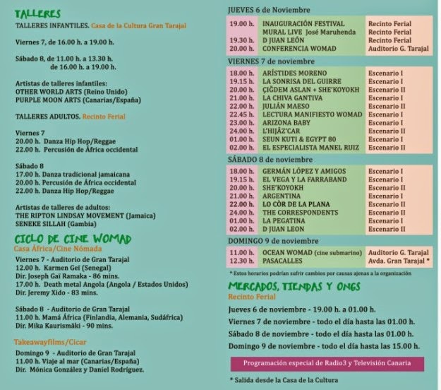 WOMAD Fuerteventura 2014. Gran Tarajal. Del viernes 7 al domingo 9 de noviembre (actividades desde el jueves día 6).